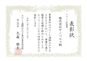 昨年度もスマート通勤おかやまに参加し、4年連続表彰されました。
